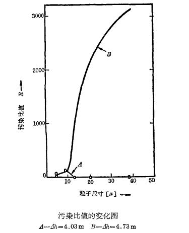 該過(guò)濾管在1.2和1.9m壓頭差下下操作獲得凈化產(chǎn)品,其污染程度低于1ppm。在壓頭差為4.0米0米時(shí)則污染程度約可達(dá)3PPmo污染系數(shù)的定義是污染的油與凈化的油中計(jì)數(shù)粒子的比值不同壓力下,粒子大小與污染比值的關(guān)系見(jiàn)圖,曲線(xiàn)中污染比值和粒子分布系指凈化油被水所污染。